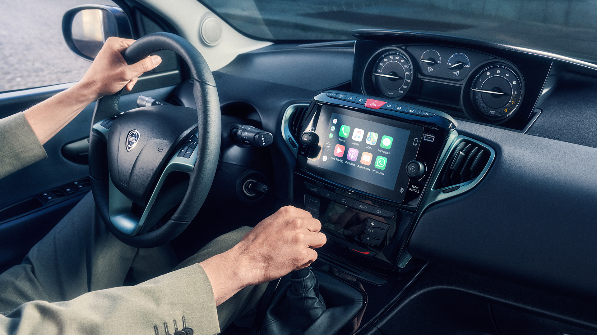 Il tessuto dei sedili è frutto della ricerca e dell’impegno Lancia verso materiali sostenibili: SEAQUAL®YARN proviene da plastica recuperata nel Mar Mediterraneo e altre fibre bio